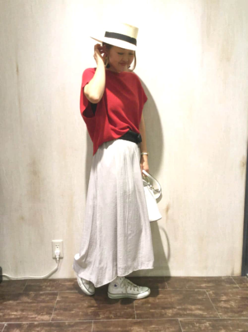 いつもご覧いただきありがとうございます🙇 珍しくスカートをはいてみました❗ 赤ニットは安定の即買いでしたが(笑) コレにはこれ~⤴⤴🎵と、スカートも即買いしました✨