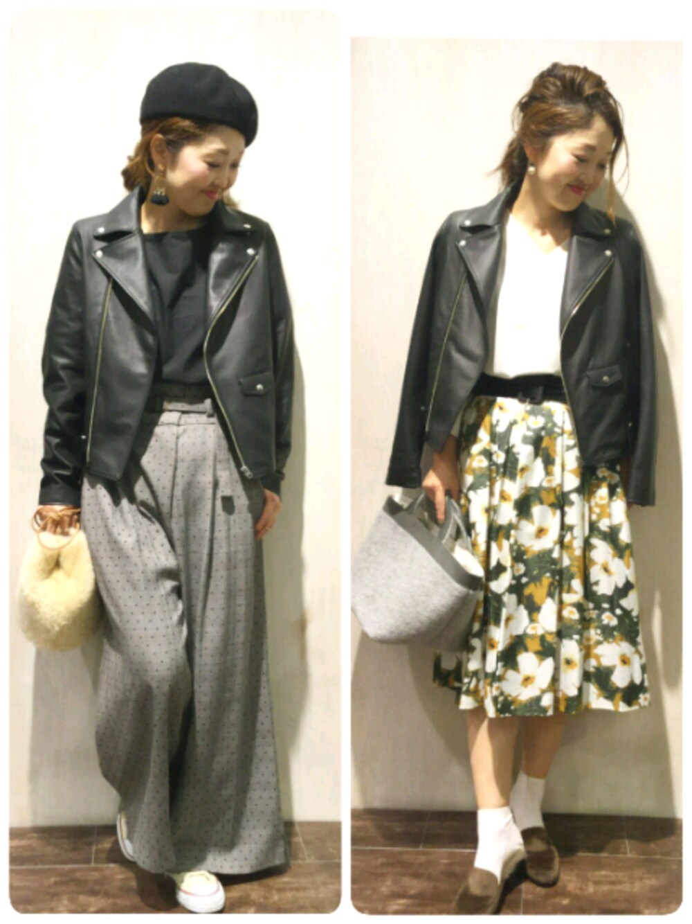 こんばんは😃🌃 新たにフォローなどなど、ありがとうございます🙇 今日はライダースジャケットで、2コーデアップしてみました☺ ハードめなジャケットをボトムや小物で、アレンジ✨まだまだいろいろなコーディネイトが楽しめそうです🎵