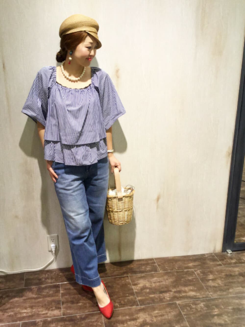 ご覧いただきありがとうございます❤ ストライプのブラウスにはやっぱりデニム🎵