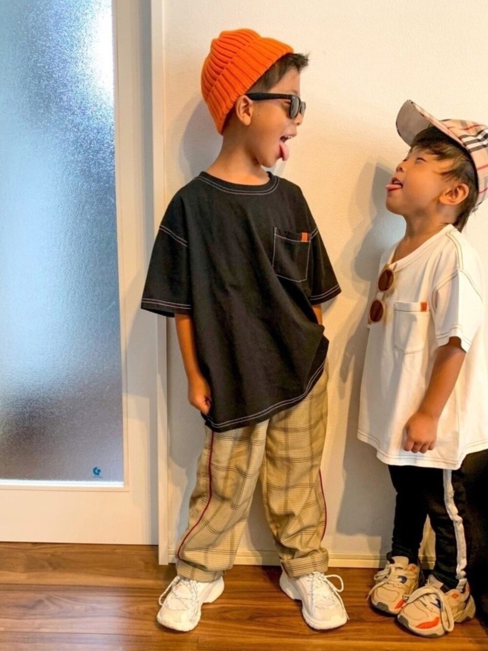 いいね、📁、フォローありがとうございます❤︎ ピックアップタグ👉#オレンジ🍊 何年前から被ってんねんっていうぐらい重宝してる、 オレンジニット帽と、 universal overallのオレンジタグ🏷 オレンジタグにステッチとかもう最高に大好きである🧡 WEARのお洒落っ子たちはみんな秋服やけど、 我が家は俄然夏服で気持ち秋意識👦🏿👦🏿w 見て頂きありがとうございます🐊 兄:身長 120cmぐらい。 弟:身長 102cm。