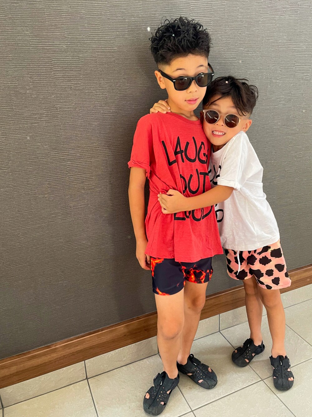 いいね、フォロー、📁ありがとうございます❤︎ 兄さん、ブロッコリーパーマあてました🥦 目指すは、スラダンのりょーちん🧑🏾🦱✨ おnewの水着は海外通販🩳 見て頂きありがとうございます🐊 兄:身長 124cm。 弟:身長 109cm。
