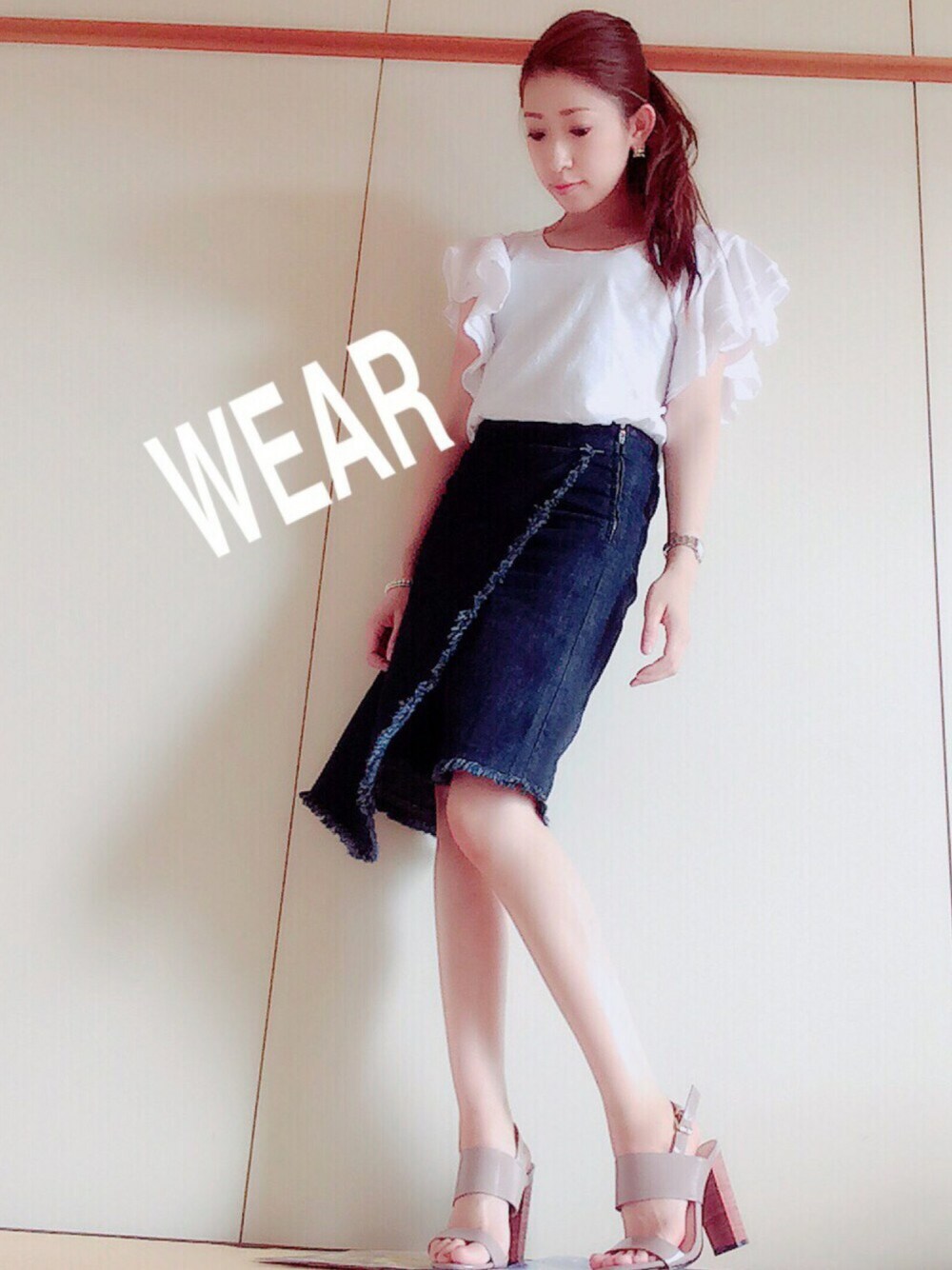 chan.eのTシャツ/カットソー「(SEEDS OF CALIFORNIA FOR RB)袖ティアードフリルTシャツ」を使ったコーディネート
