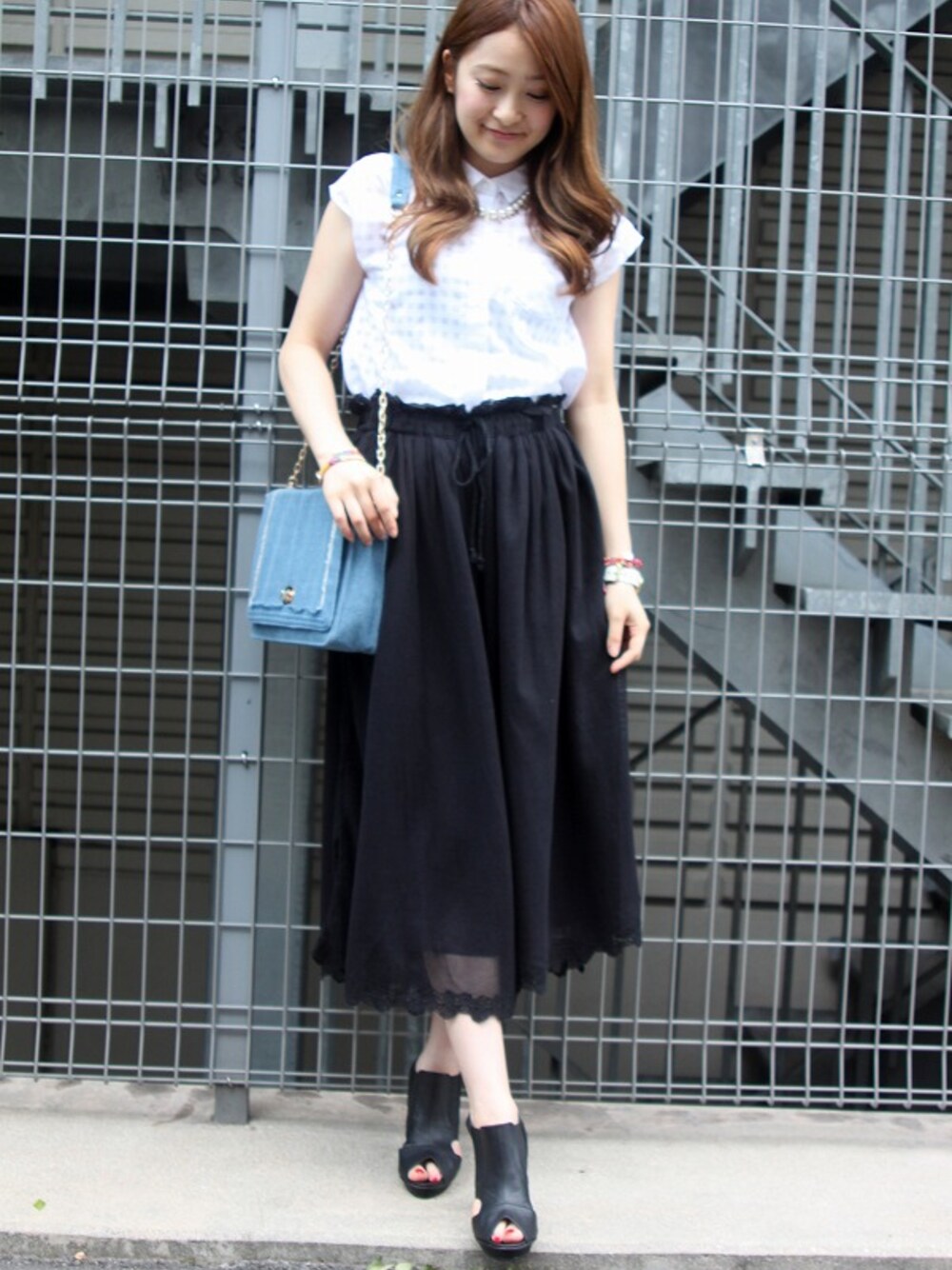 ブラック系のサンダルを着用したレディースの夏コーディネートの1枚目の写真