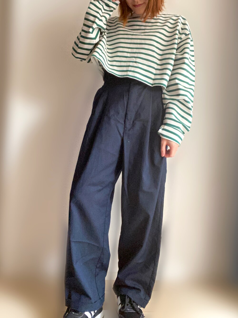 miii。のカーディガン/ボレロ「パリスボーダーショートトップス」を使ったコーディネート