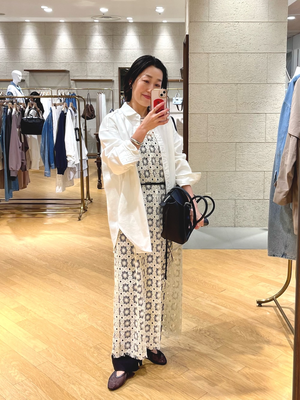 春らしいレースワンピースを使ったレイヤードコーデ。 レースのワンピースはデニムやパンツと合わせていただくと華やかさもアップし、季節感のある着こなしに。 春は上からシャツやジャケットを羽織っていただくのがおすすめ。 中に履いているパンツは美脚効果バツグンで履き心地がとても良いです。 裾にジップが付いており、スリットにしていただくと抜け感も出てより脚が綺麗に見えます。 ウエストも1周ゴムでストレスフリーの履き心地。 36サイズ着用。 ウエストにコードベルトをプラスしてポイントに。 甘くならないようにモノトーンで合わせました。