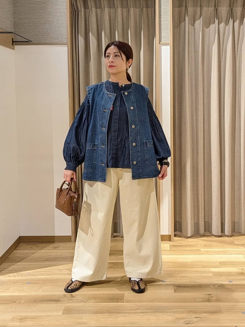 emiclip1921(studio CLIP ゆめが丘ソラトス店)のベスト「ノーカラーデニムベスト《CLIP denim》」を使ったコーディネート