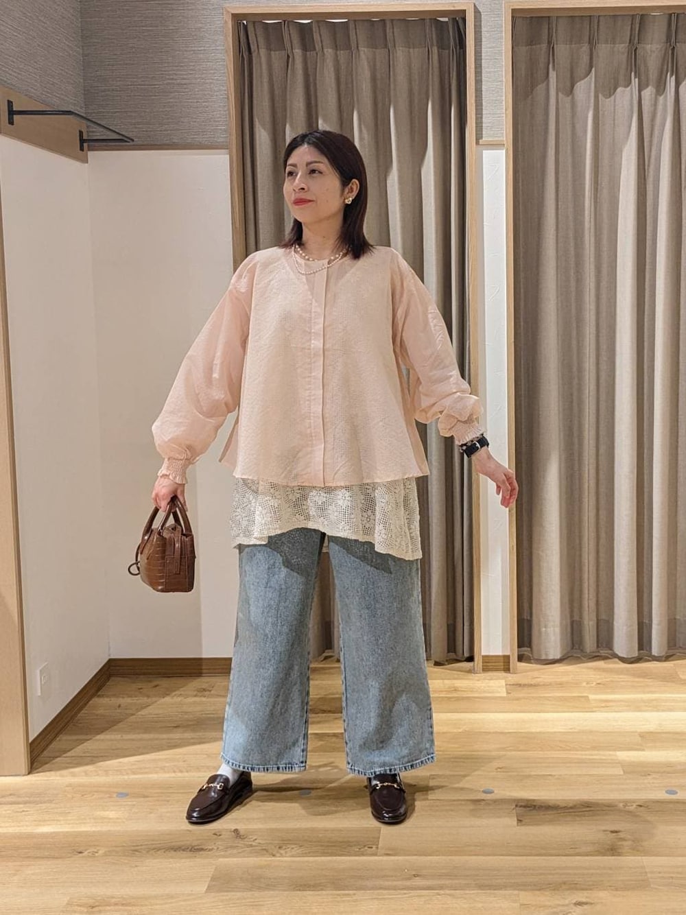 emiclip1921(studio CLIP ゆめが丘ソラトス店)のデニムパンツ「ストレート甘織りデニムパンツ[プチ・プラスサイズあり]《CLIP denim》」を使ったコーディネート