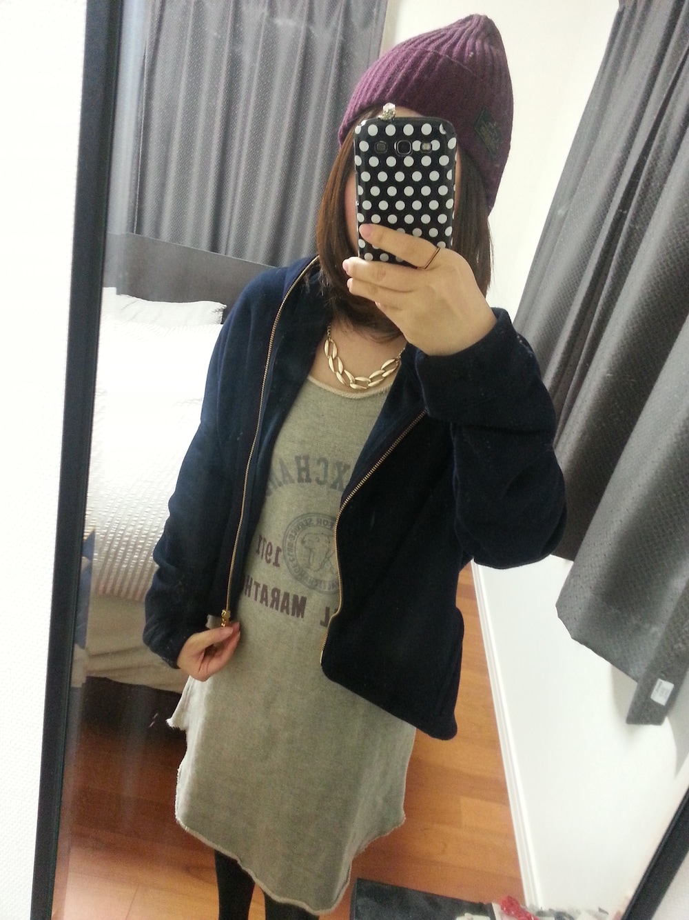 ニット帽:Mighty Shine ボアジップパーカー:HARE スウェットワンピース:Inpaichthys kerri(古着) ネックレス:nano universe