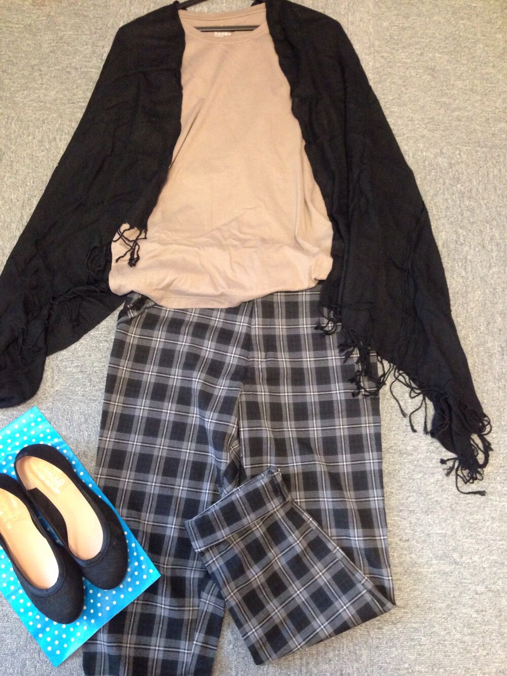 息子とお買い物コーデです。 秋冬物のパンツをもういいかなと思って履いたら、急に暑くなってまだ早かったと後悔しました(笑) ストールも撮りましたが一回も巻きませんでした。 パンツは2回折り返してレース部分を隠して履いています。
