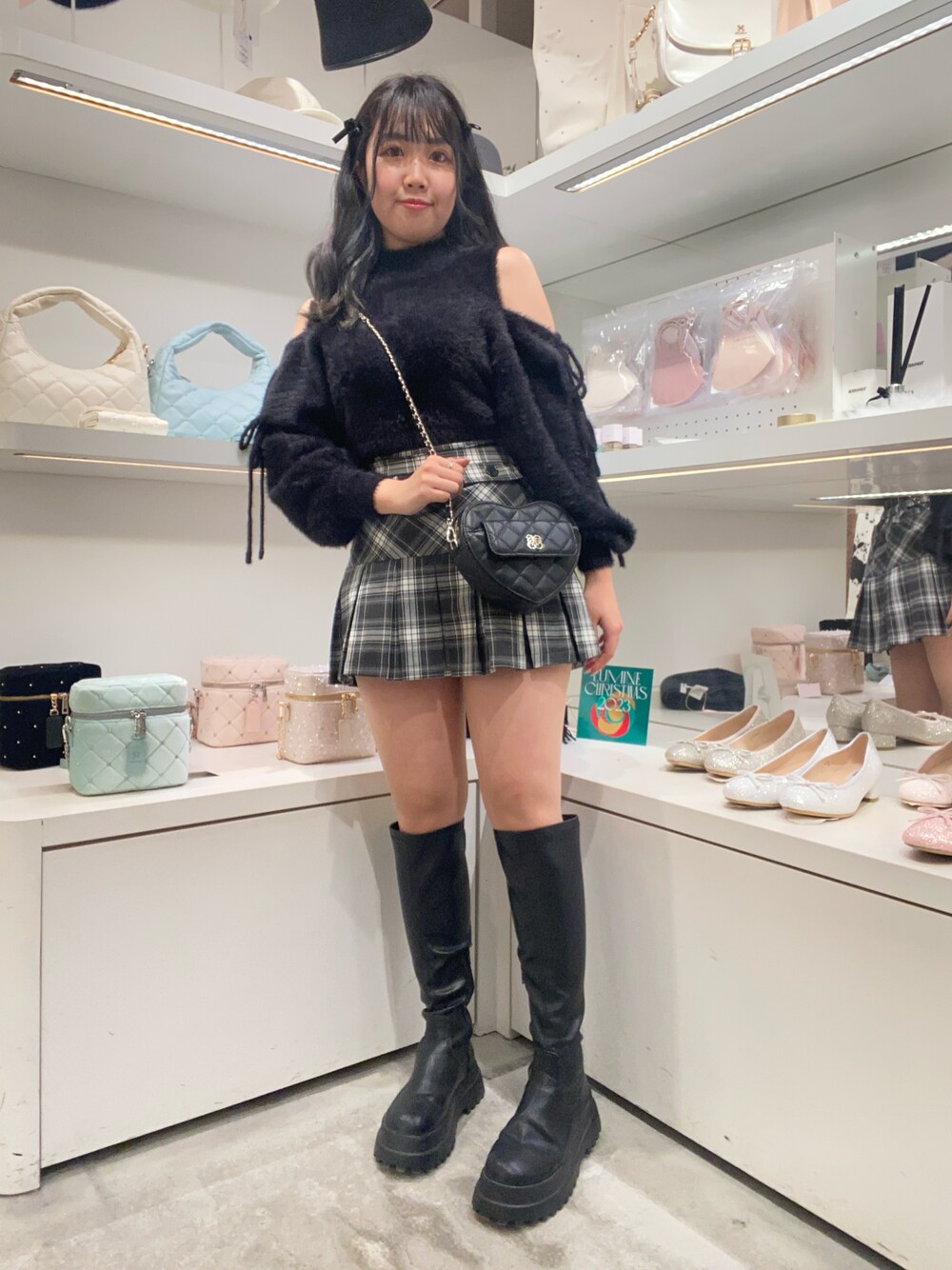 Emi【骨格ウェーブ/ブルベ冬】(one after another NICE CLAUP)のニット/セーター「肩あきマルチウェイ/あざとフェザーリボンニット」を使ったコーディネート
