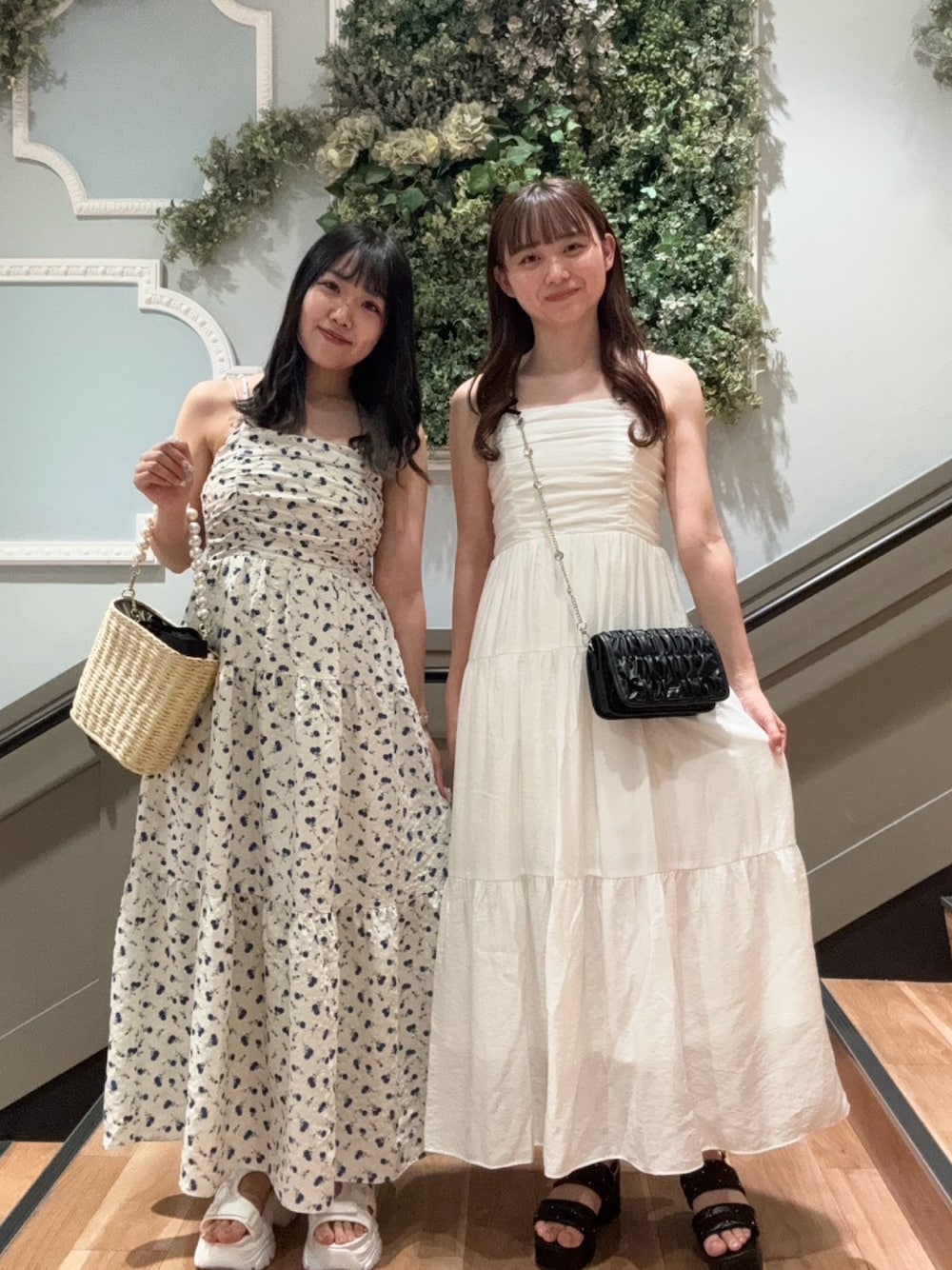 Emi【骨格ウェーブ/ブルベ冬】(one after another NICE CLAUP)のワンピース「ヘアクリップリボン付き/ティアードキャミワンピース」を使ったコーディネート