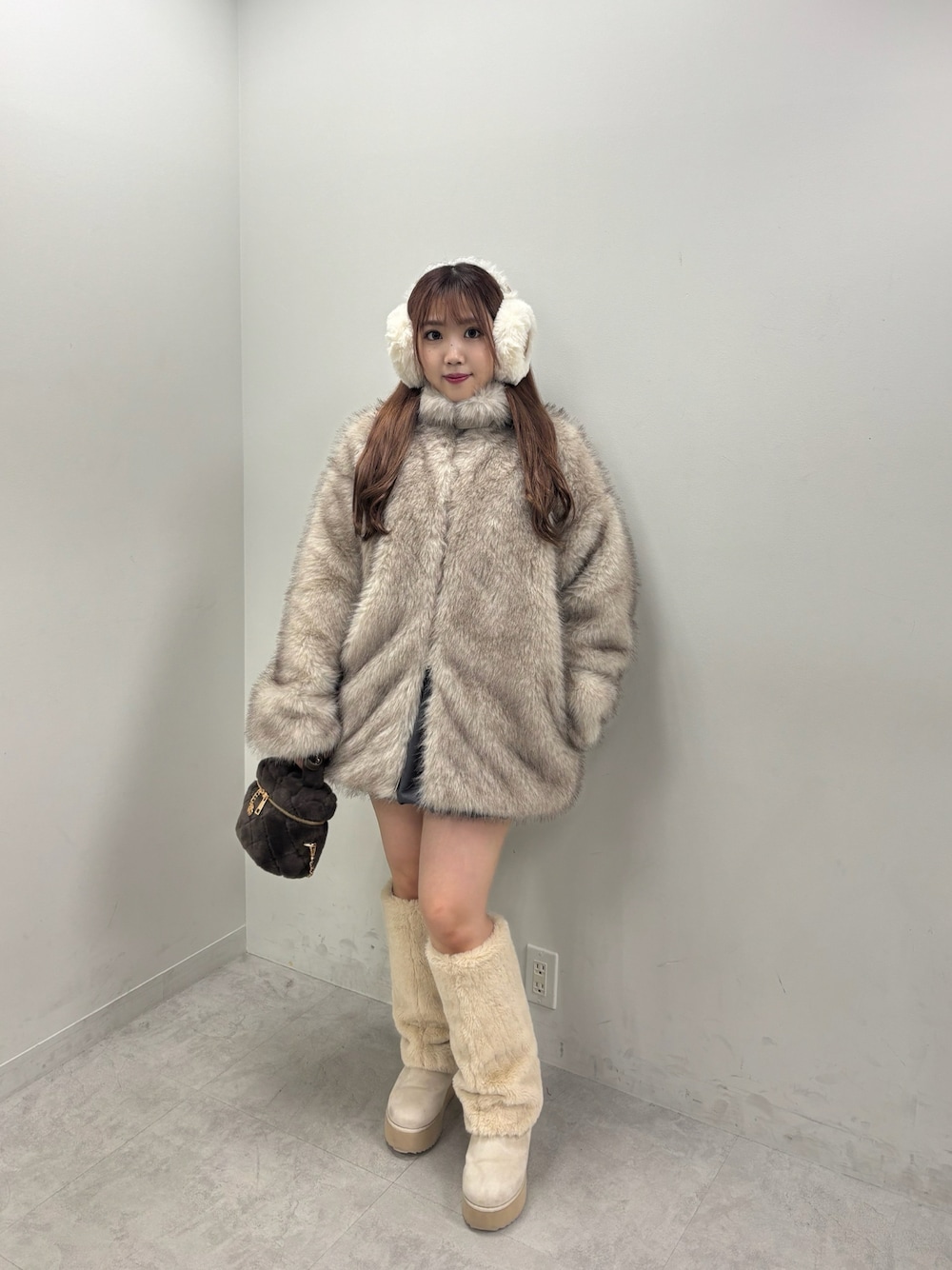 Emi【骨格ウェーブ/ブルベ冬】(one after another NICE CLAUP)のブーツ「【新色追加】2wayフェイクムートンロングブーツ」を使ったコーディネート