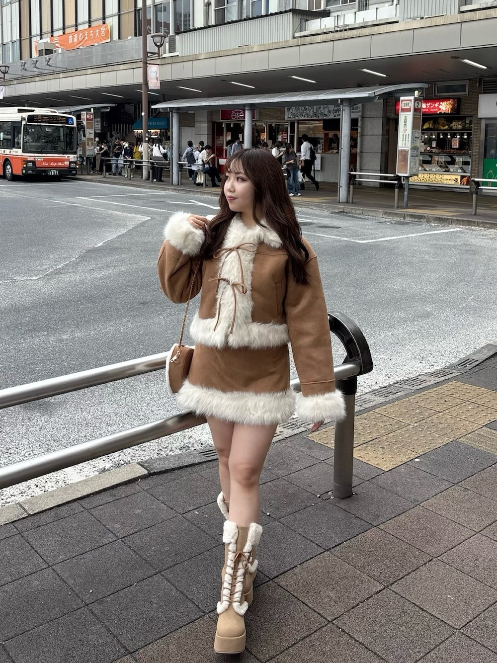 Emi【骨格ウェーブ/ブルベ冬】(one after another NICE CLAUP)のブーツ「【再入荷】マイナス3キロ見えレースアップムートンブーツ」を使ったコーディネート