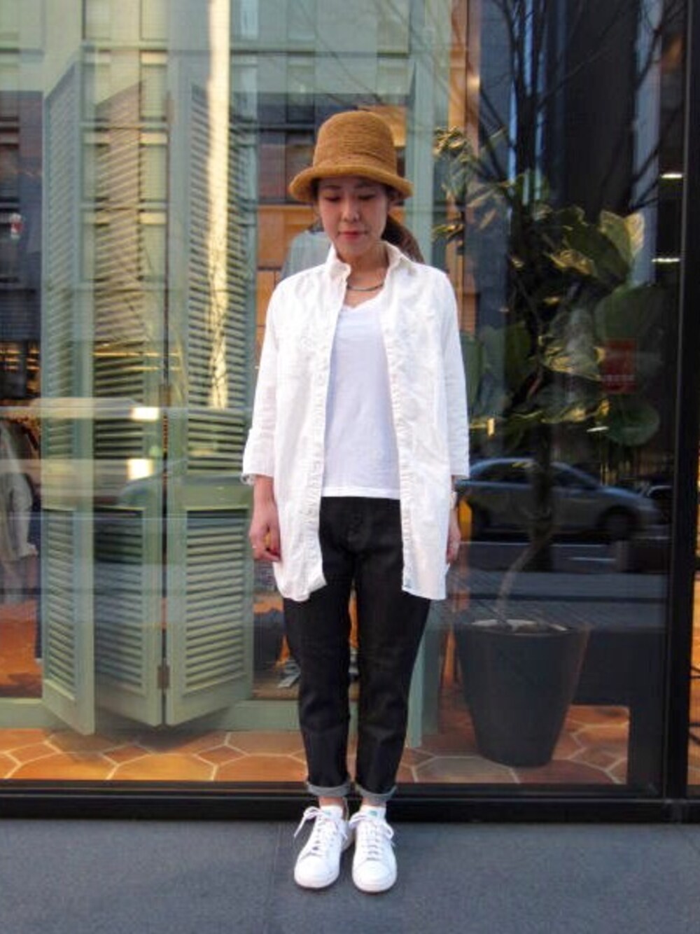 Emika Abeのシャツ/ブラウス「Πorslow×BEAMS BOY / ロング ワーク シャツ」を使ったコーディネート