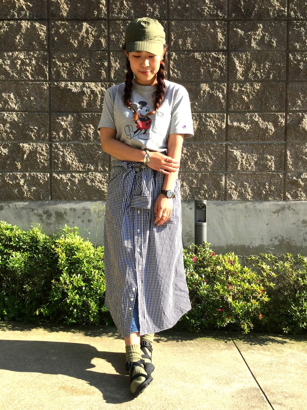 Emika AbeのTシャツ/カットソー「CHAMPION×BEAMS BOY / ミッキーマウス ポケットT SPECIAL (Disney)」を使ったコーディネート