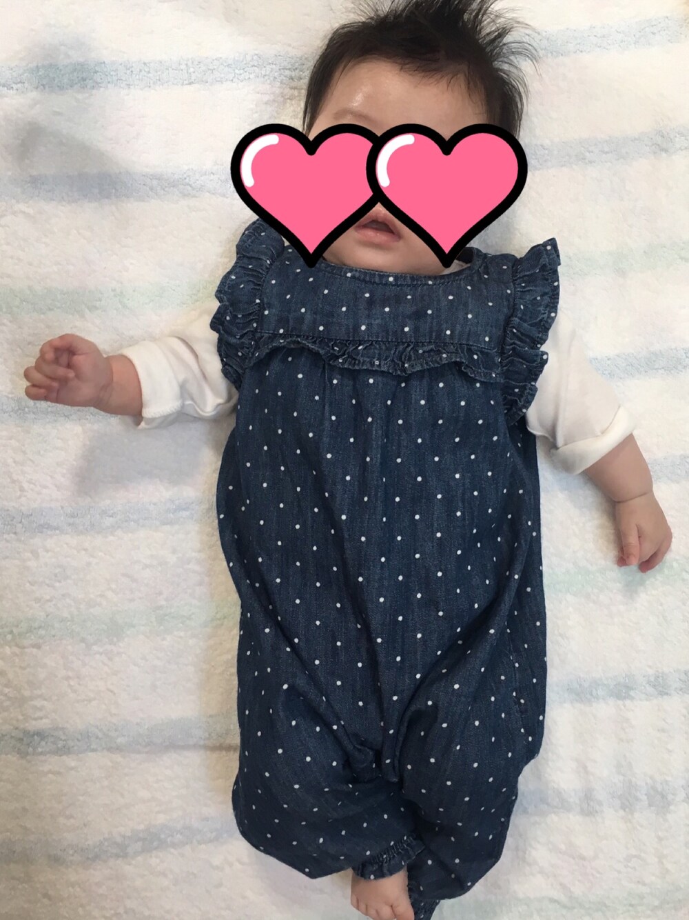デニムのサロペットが可愛い💕