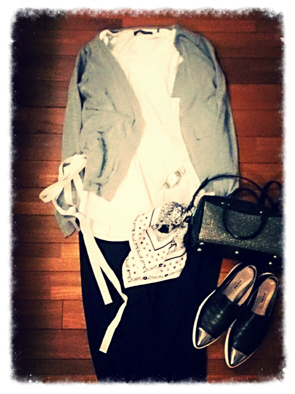 昔買ったsacaiのカーディガン 着方が複雑なので、あまり出番がなかったけれども、自己流の着を発見したので、今になって活躍しそう(笑)。