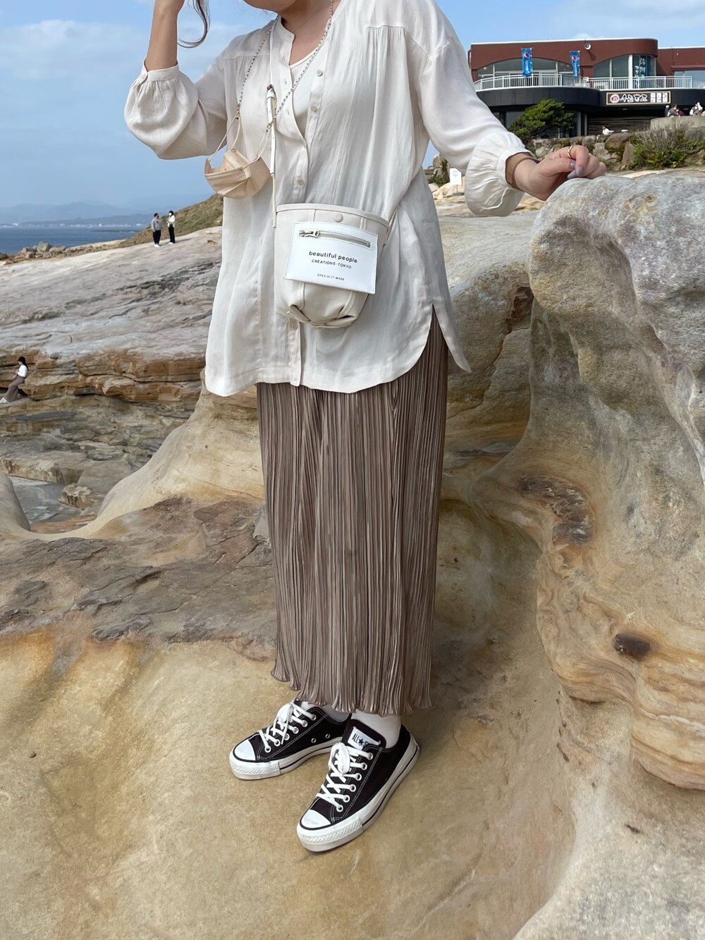 絵美菜 のシャツ/ブラウス「ビンテージボイルバンドカラーシャツ/ビッグシルエット/ハイネック/スタンドカラー/チュニック/ハイネック/スタンドカラー/ボリューム袖」を使ったコーディネート