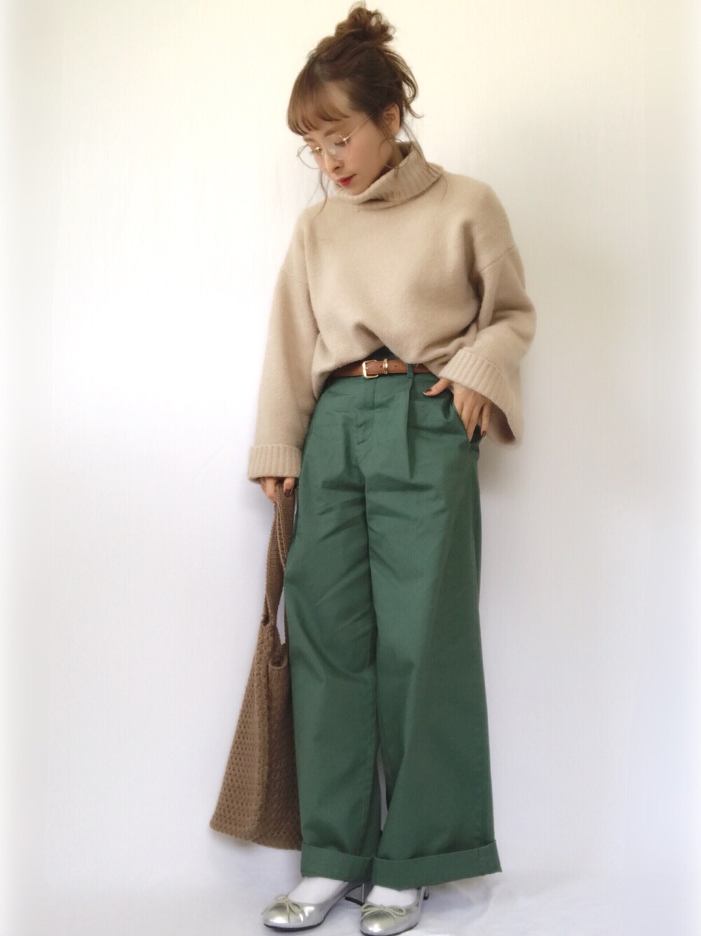 パンツ→UNIQLO(ハイウエストチノワイドパンツ)
