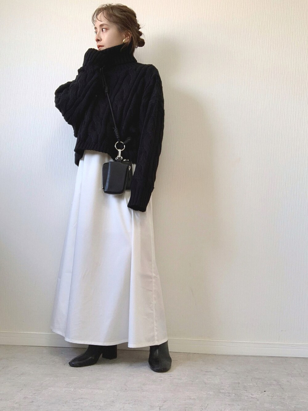emineoのニット/セーター「2021 AW タートルネックツイスト編みショートニット」を使ったコーディネート