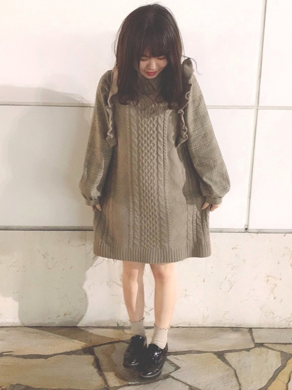E m i r iのワンピース「フリルニットワンピース×ブラウスセット【ZOZOTOWN限定アイテム】」を使ったコーディネート