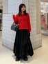 147cmレビュー⬇️ トップス→意外にフワフワ生地で、 着心地抜群です🎶 お袖少し長めですが、ロールアップしても⭕️ 透け感も強くないので、肌見せ感もないです⭕️ スカート→ウエスト一度折っています! 折ると地面につかない長さです👀 驚くくらい柔らかくて肌あたり⭕️ とっても動きやすいです!!💕