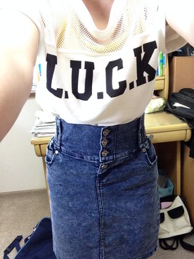 「アイテム(デニムスカート、ホワイト系)」を使った、えみりさん(レディース・157cm)の春コーディネート