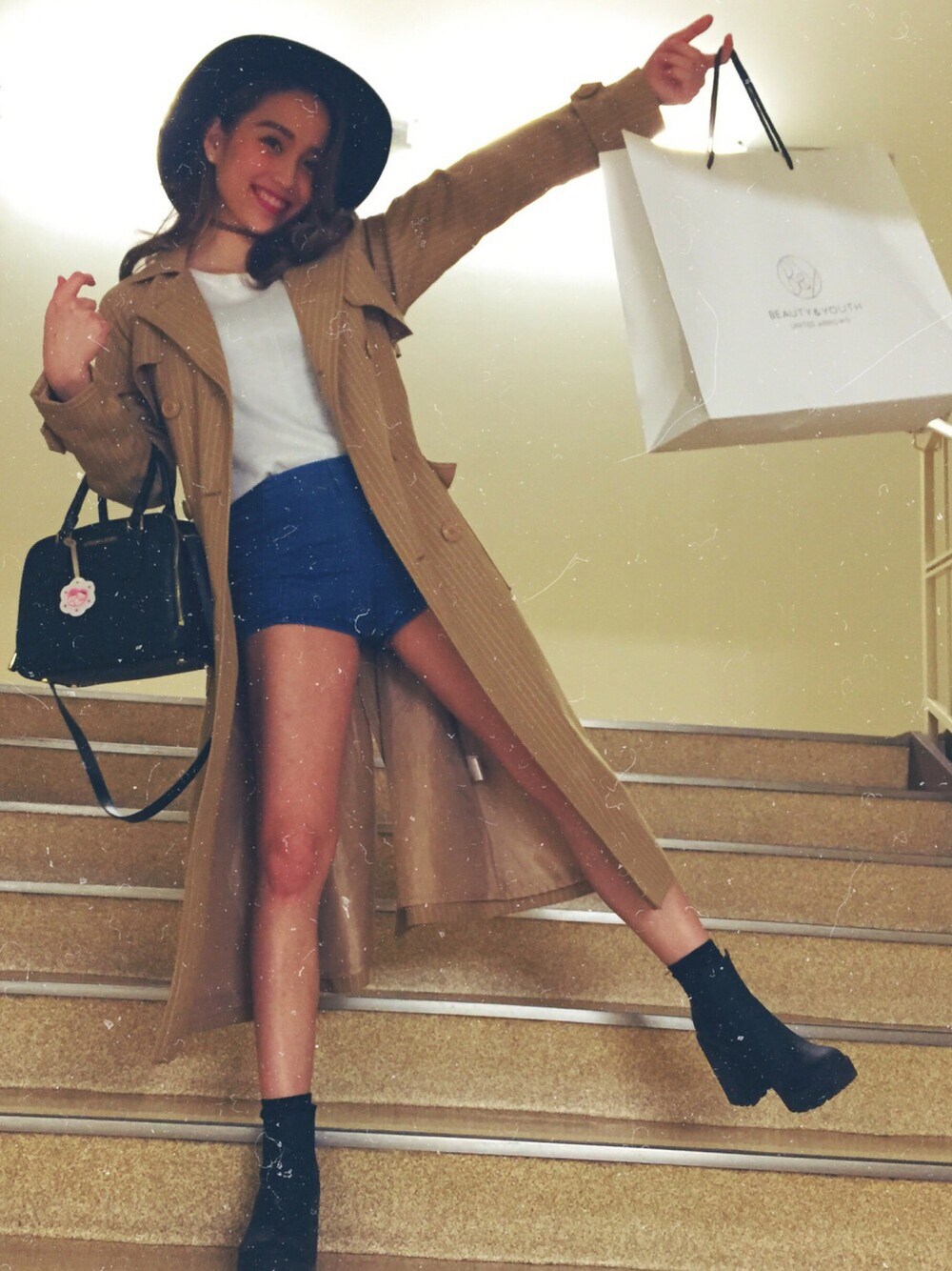 ロングトレンチコートは Heatherのものになります! トップスはEMODAで ショートパンツはF21のものです! サイドゴアブーツは H&Mのものになります! バッグは MichaelKorsのです!