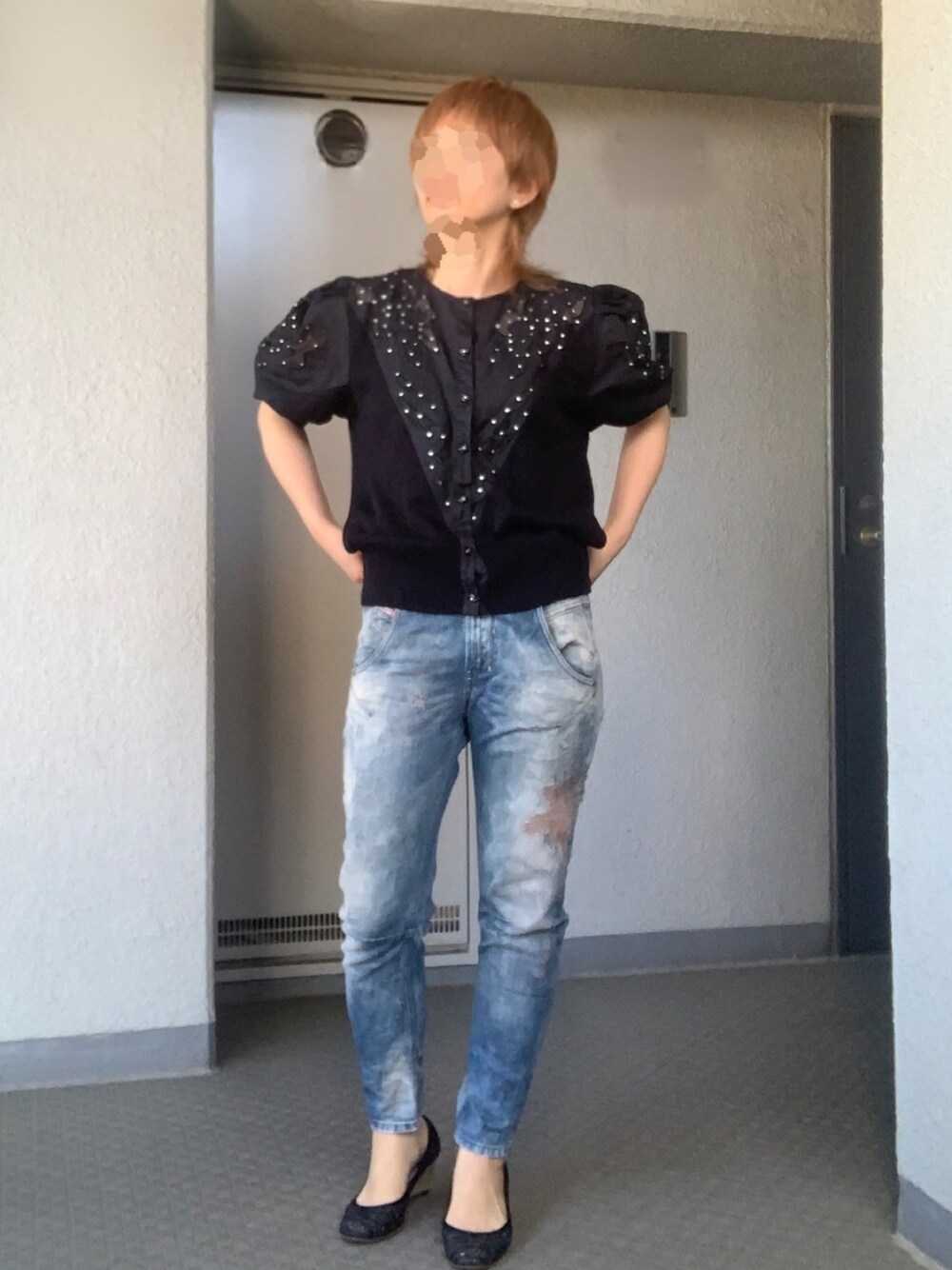 のしこのデニムパンツを使ったコーディネート