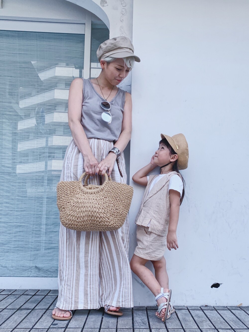 ベージュで親子コーデ。
