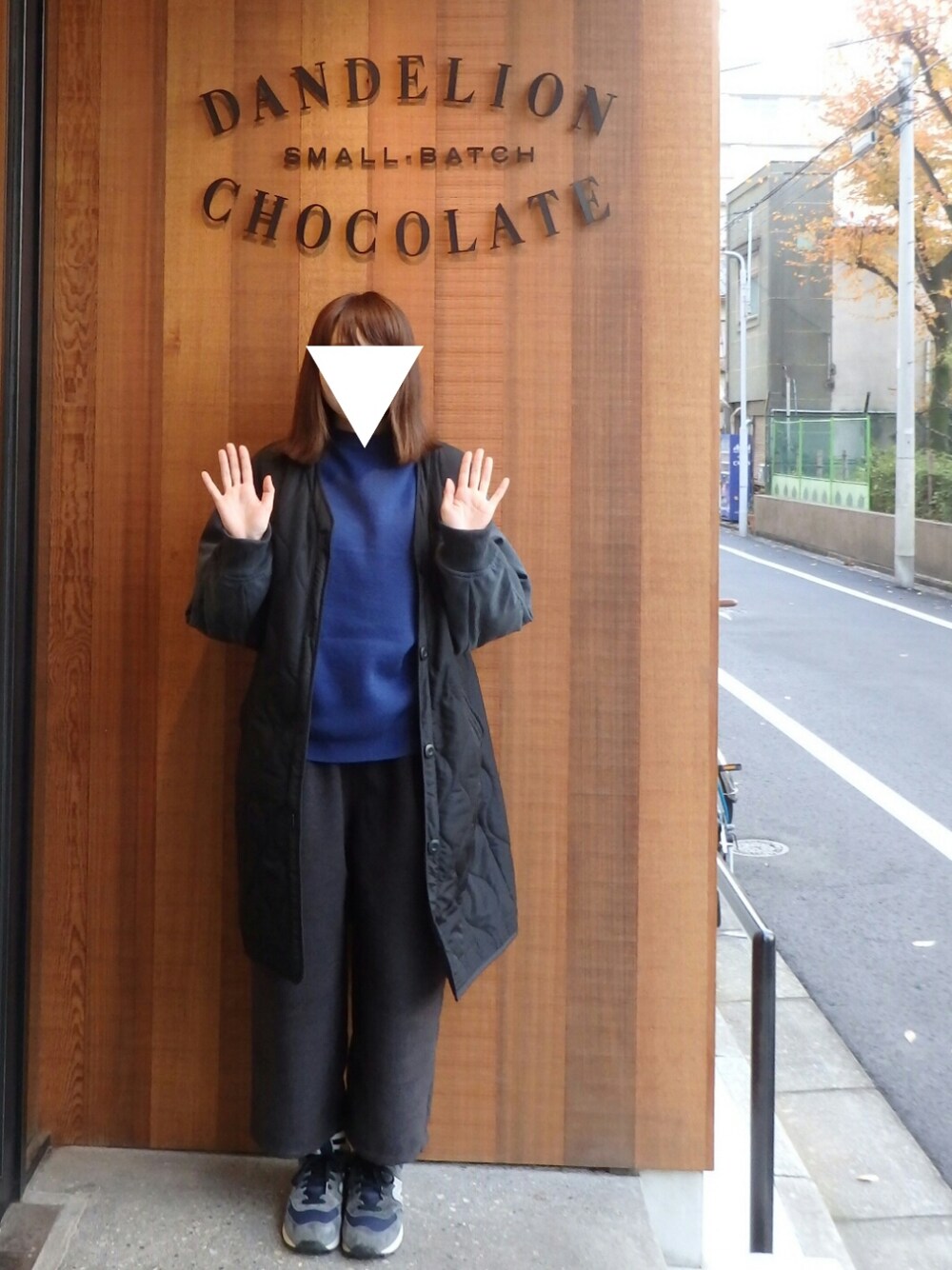 都会に来て浮かれてます。で両手あげ😂 異素材切替のキルティングコートが軽くて温かくて🙆
