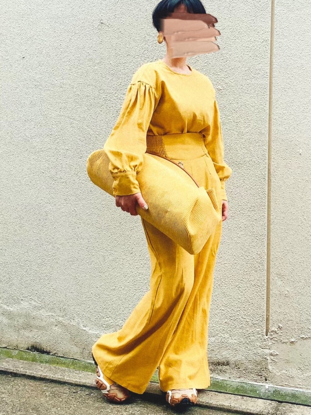 全身イエロー✨A VACATIONのデカクラッチバッグは一目惚れで購入しました😍