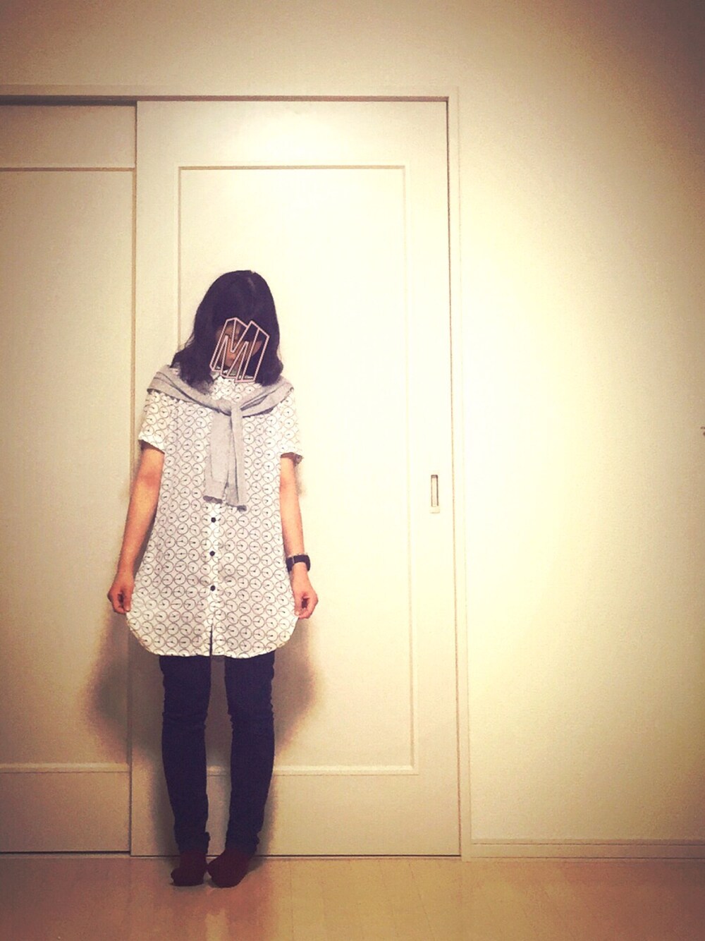 メラーンジュで買った時計いっぱいの シャツワンピです(^_^)お気に入り🌟 少し寒かったのでデニムパンツと👖