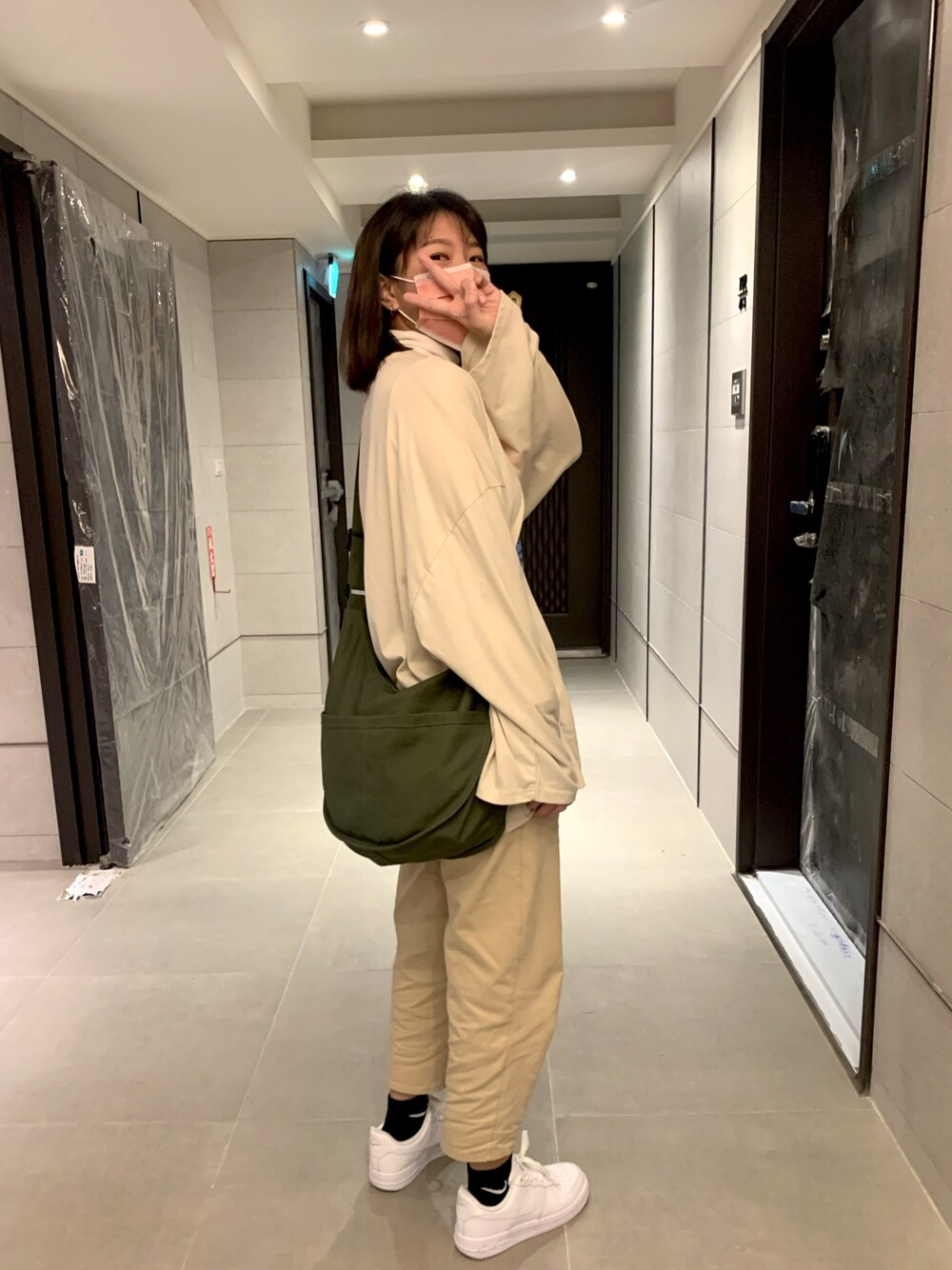 陳馨🇹🇼 のスニーカー「ナイキ エア フォース 1 '07 ウィメンズシューズ / Nike Air Force 1 '07 Women's Shoes DD8959-001 Black」を使ったコーディネート