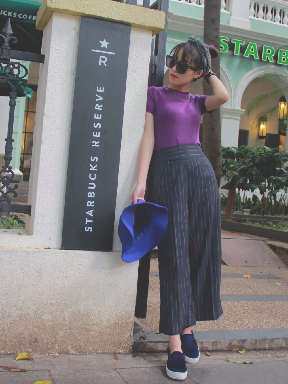 简单的LOOK 搭配同色系,轻松出门。