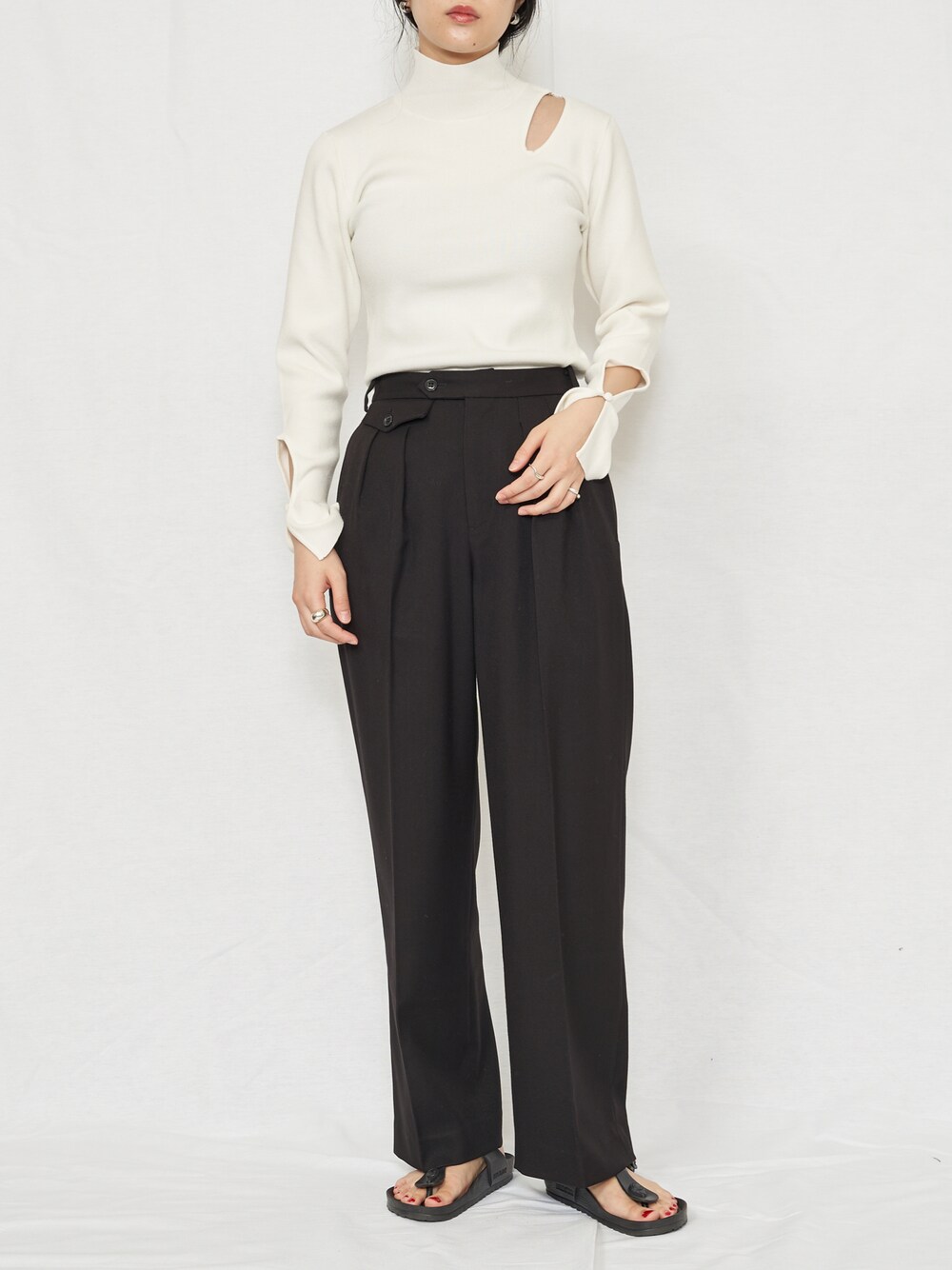 EMMA LIMBERのスラックス「Coin Pocket Straight Pants(コインポケットストレートパンツ)」を使ったコーディネート