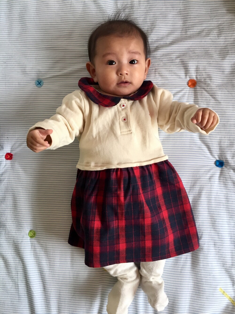 シンプルコーデ失礼します😅 足すりすりが大好きで タイツがよくびよーんってなります😂笑 昨日は予防接種だったので今日はゆっくりするぞ〜 注射する前から泣く娘、、分かるんだなぁ🤔💭 よく頑張りました◎来月はBCG〜〜😂