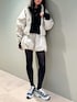 セットアップコーデ♡ シンプルで大人も着やすいチェック柄です! スポーティながら洗練され印象で、メモリータイプの素材を使用していて軽さと形状保持で美しいフォルムをキープしてくれます😌 ダブルジップ、フードは襟に収納可能✨ ワークアウトにもデイリー使いにもオススメ🤝 新鮮なバルーンシルエットのショートパンツ☁️ チェック柄はほどよくハリ感もありシルエットがしっかりでます! かわいらしさもありつつ、パンツタイプなので動きやすくアクティブシーンにも⛰️✨ スニーカーは通常通り24.5を選びました 身長:165cm 店舗名:渋谷ヒカリエShinQs LIMITED CONCEPT STORE店