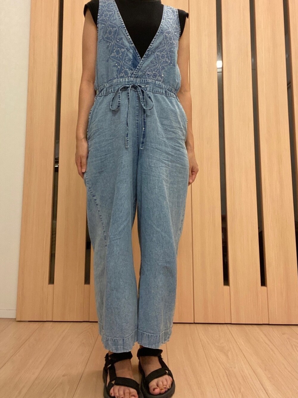 Emmyのサロペット/オーバーオール「クロス刺繍デニムサロペット」を使ったコーディネート