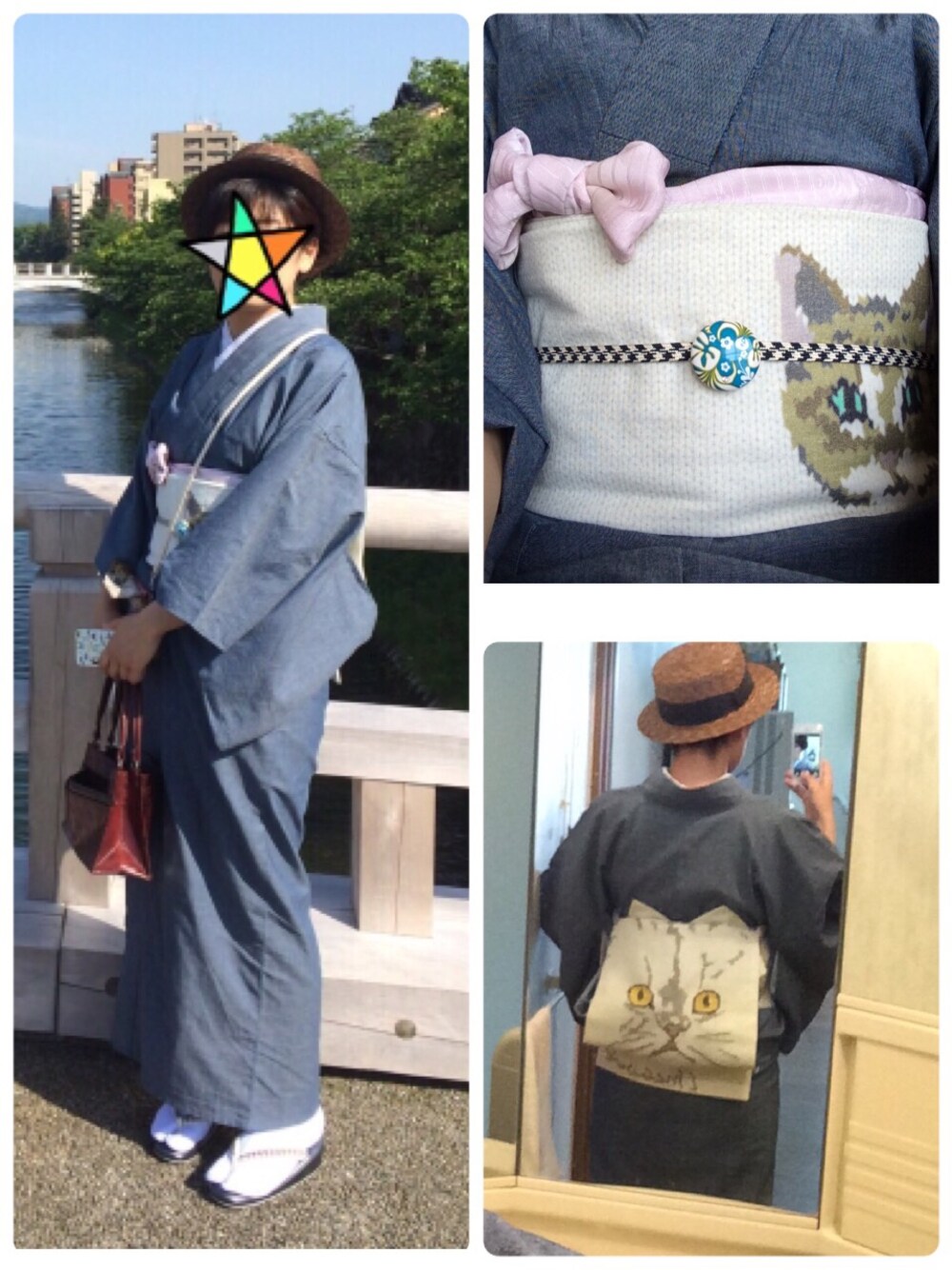 去年の初夏(6月くらい?)のコーデ シャンブレーデニムの単衣にハイカロリイオトメさんの越後からむしのにゃんこ帯を猫耳結び。 帯留めは友人からのプレゼント。 草履の鼻緒と三部紐を統一。