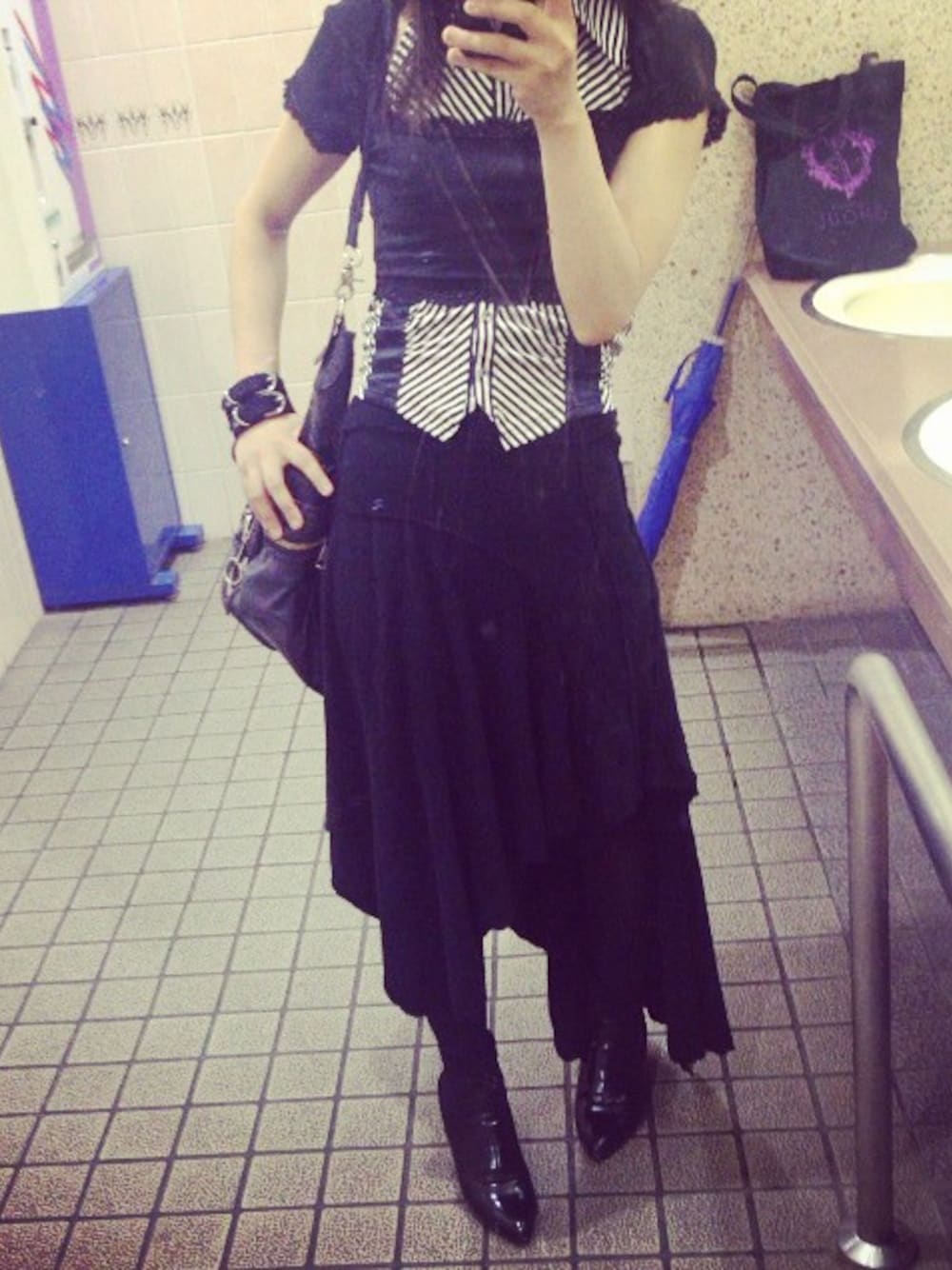 ブラック系のブーツを着用したレディースの夏コーディネートの1枚目の写真