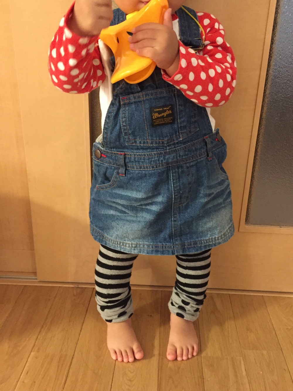 しまむらのサロペット!一枚あると重宝します。 UNIQLOロンTのミニーちゃんが隠れてしまってますが…