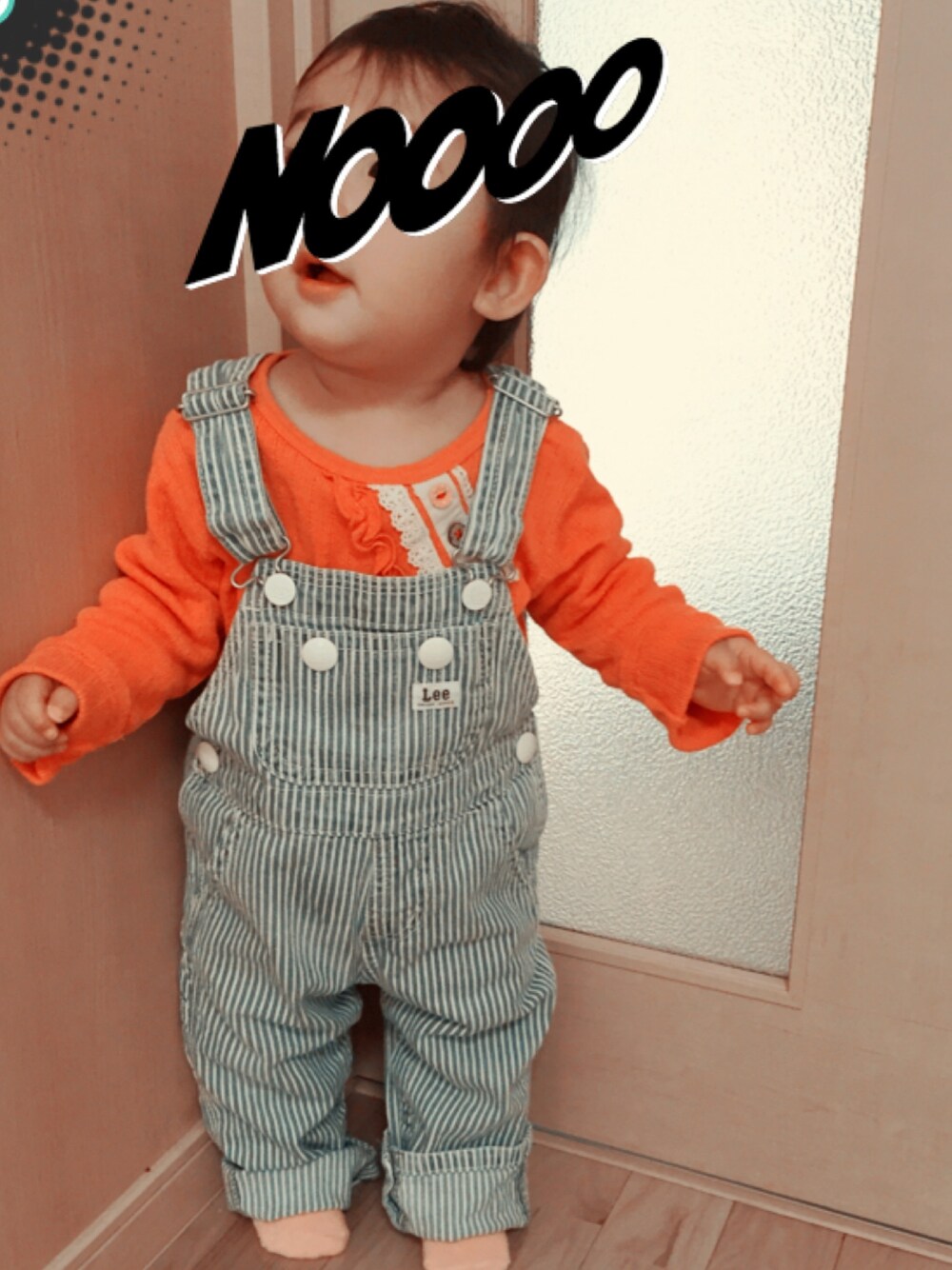 お兄ちゃんのお古を着ています♡ 髪の毛が少なく、男の子に間違われがちなので、インナーはピンクで♬