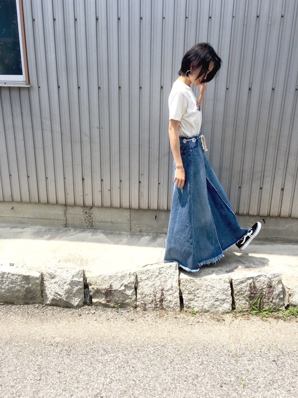山中 沙弥佳のデニムスカート「アイレットカコウマキシデニムスカート(HARE)」を使ったコーディネート