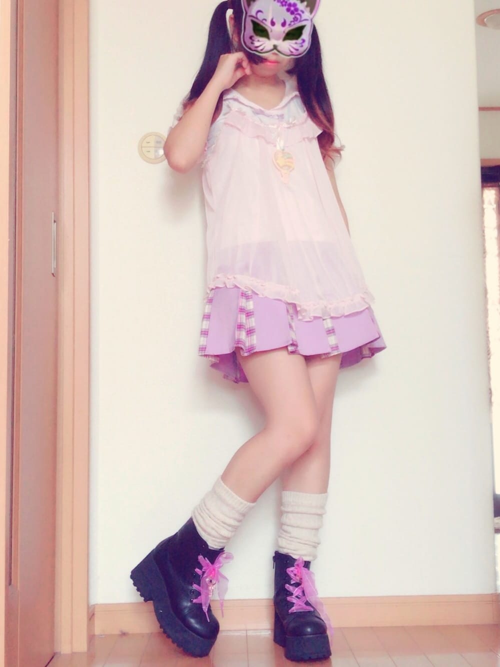結局ゆめかわ系に戻ってしまう。 さて何歳まで着続けるのかなー??(☝︎ ՞ਊ ՞)☝︎ ブーツはもともと真っ黒の靴紐。 リボンを変えてアクセサリーを自分でつけました(*^o^*)