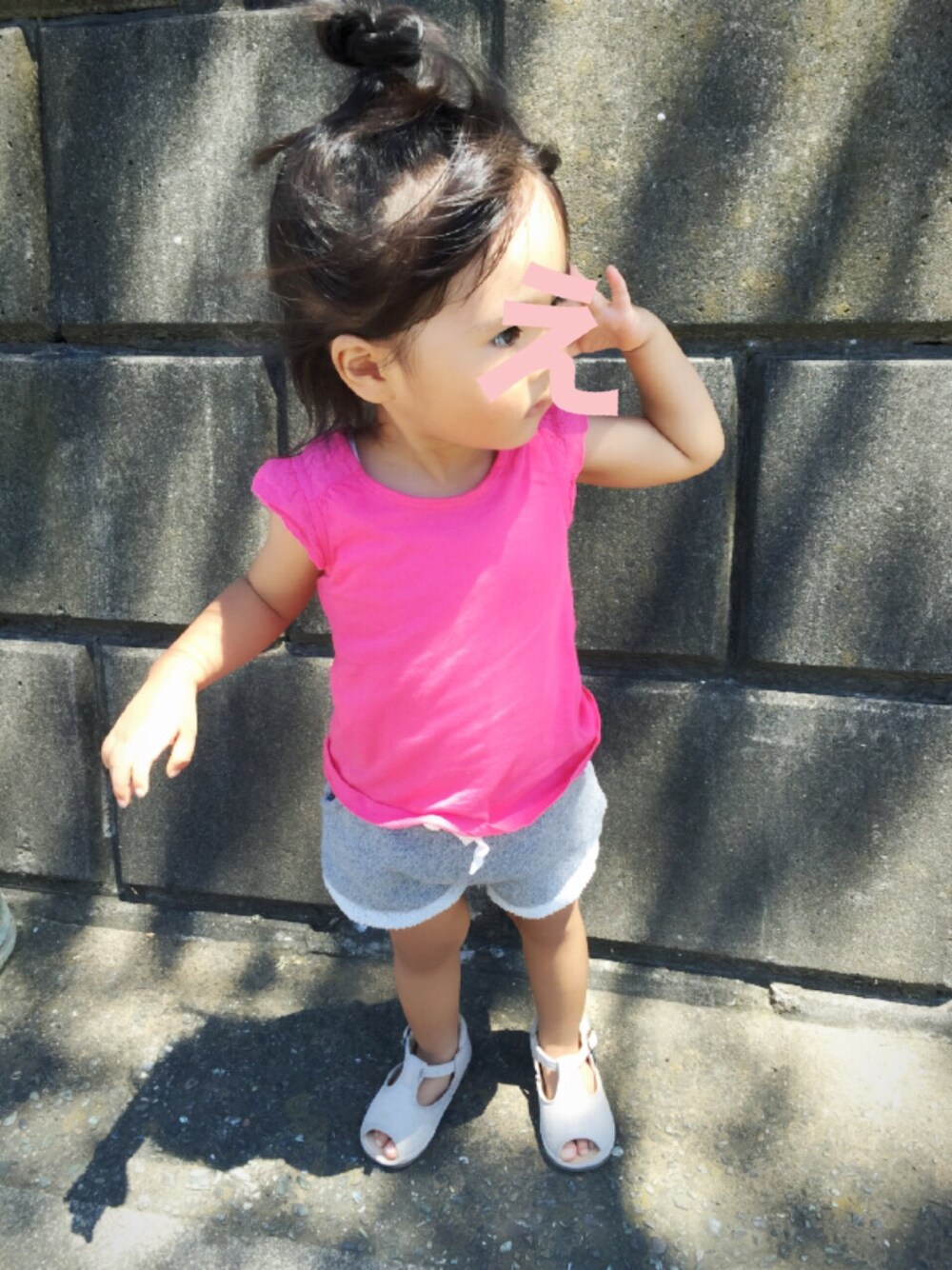 ピンク系のタンクトップを着用したキッズの夏コーディネートの1枚目の写真