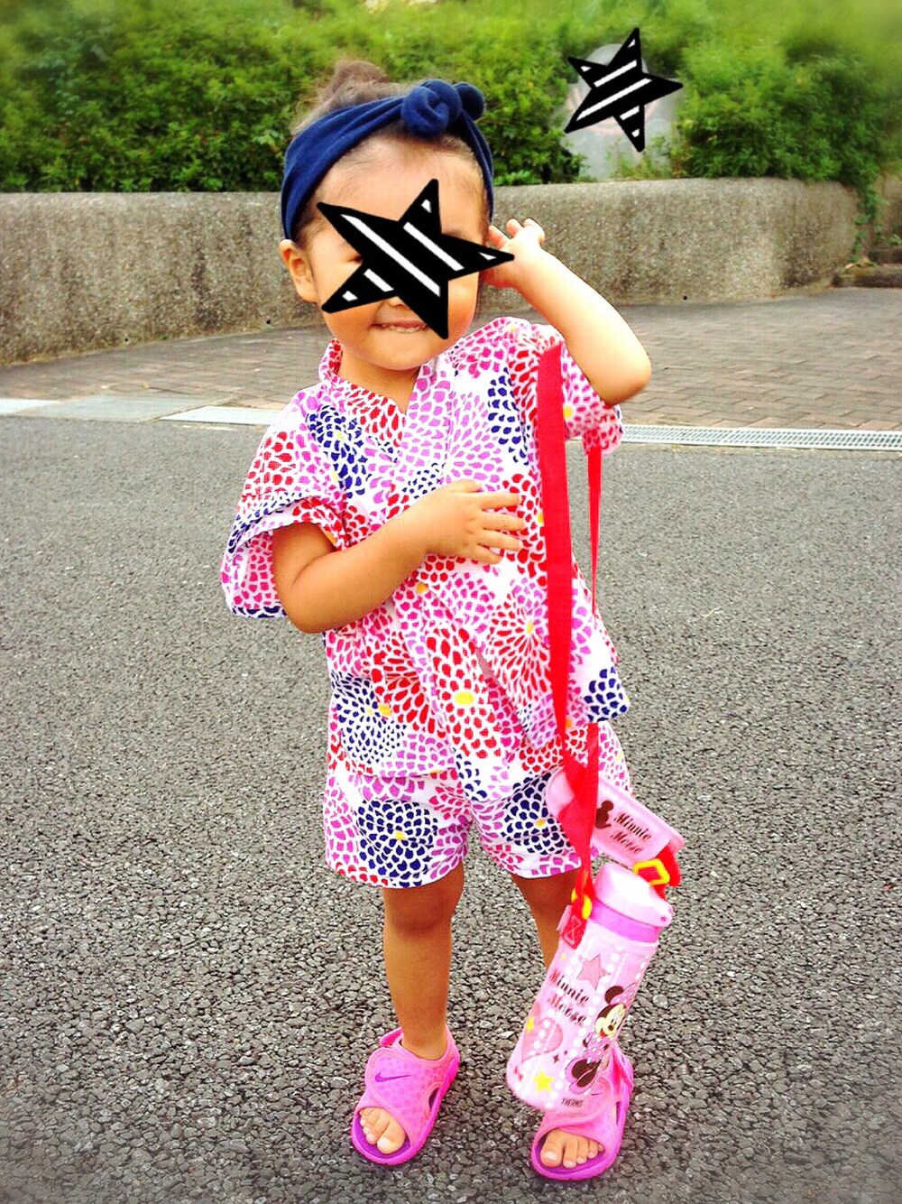 ピンク系の浴衣を着用したキッズの夏コーディネートの1枚目の写真
