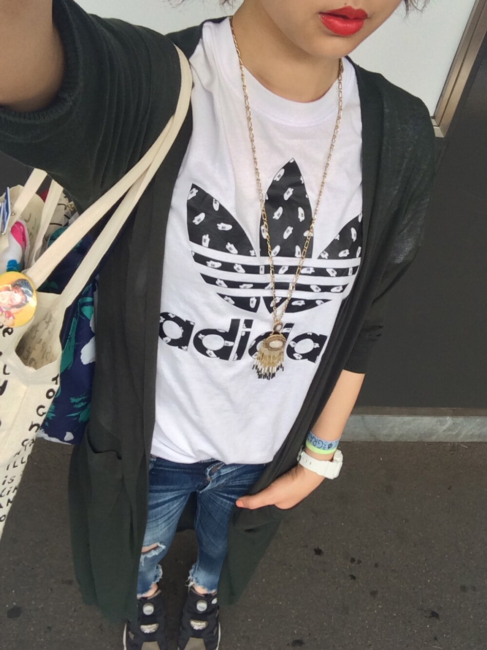 昨日と違うのはトップスだけ。 トップス変えただけですごくスポーティー!恐るべしアディダス( ̄∀ ̄)笑 今日もKRY参戦しますが、夕方までぼっちの予定😭😭😭なので、優雅に☜ウィンドウショッピングでもしてこようかと思います😁💕 いやしかし、雨の日にロングカーデはダメですね(((((((;´д`)))))))裾がえらいことなってる(笑)(笑)(笑)