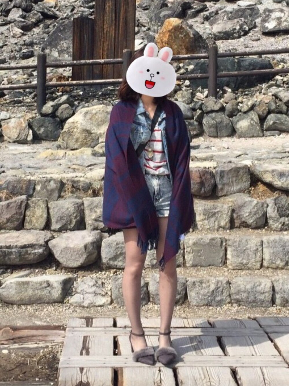 那須に遊びに行った時の。 この日すごく温かくてGジャンで過ごせた!でも山の方はさすがに風が冷たくてストールを羽織ってました💦 いい感じに見苦しい脚を隠してくれてる(笑) 彼氏さんからショーパン履いてってリクエストがあったからこんな感じになりました(笑) 因みに、靴はDHOLICです😳この日初めて履いたけど、結構歩きやすかったな!5〜6cmのヒールがちょうどいいね〜。中々売ってないけど〜。 何気にデニムオンデニム(・`ω・)