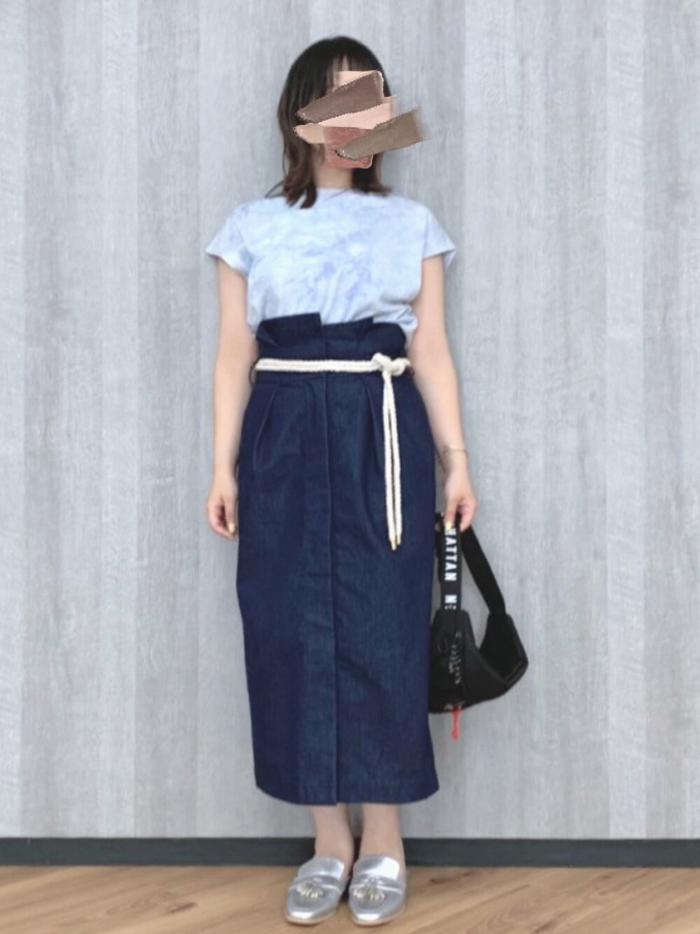 トップスのレイヤードフレンチスリーブは インナーと2枚重ねになっている優れもの! スカートはウエストリボンを外して ベルト合わせにしました✨ 小物にボディバッグを使った 大人カジュアルなコーデです👟💕